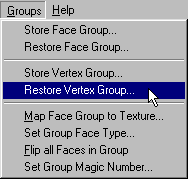 Now that we're all set, goto Groups>Restore Vertex Group.
