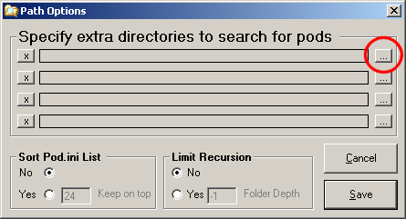 Before getting down to the nitty gritty, a word about pods in sub folders might be helpful. Some programs, like PodIt, will read pods in the game folder and it will also read pods in sub folders in the game folder. This is a very handy way to help organize your pod files. Cowpod will do this too. However, while Podit will read files in the next level of folders, Cowpod will read the files in all sub folders, no matter how far away from the game folder they are. For example, Podit will read pods in an "addon" folder.