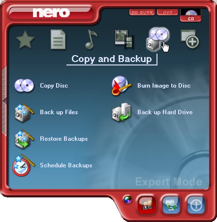 Note 2. Nero uses what they call a StartSmart screen. Close it, and open Nero Burning ROM directly from the menu. If you're bent on the StartSmart menu then select