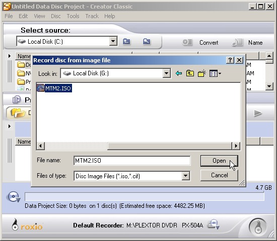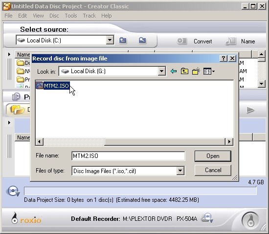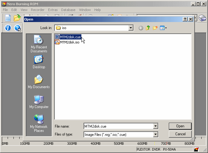Step 4. Browse to and select the image you downloaded (MTM2.ISO or MTM2disk.cue).