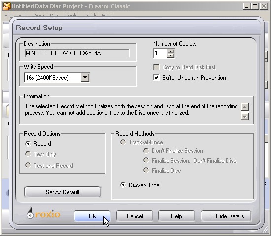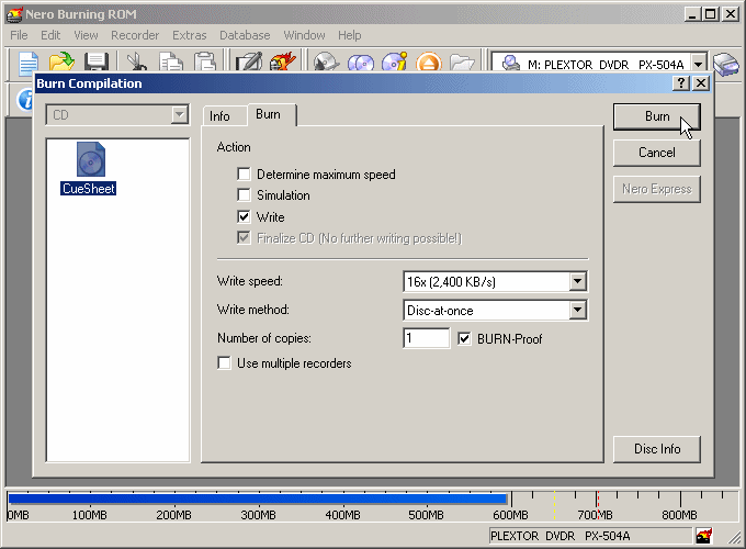 Important. Nero is currently the only program that handles disk images of this type. You MUST use nero for the disk image.