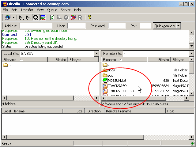 • That is not a problem. This program will connect more than once at a time. The top pane is for browsing the file tree (or whatever it's called). The bottom pane shows the transfers. When one file finishes, it will automatically connect again for the next in the line. If that connection breaks, for any reason, FileZilla will automatically reconnect to continue the download. It's very user friendly, which is why I suggested using it. You do not need to keep reconnecting. Just select the files you want, download, then minimize to the icon tray until it finishes.