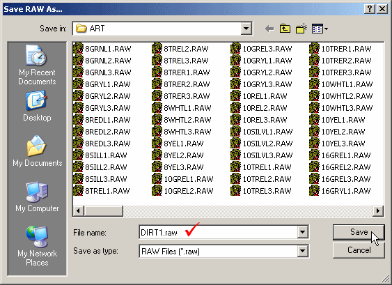 Now that we have our textures finished, we need to convert them back into the format the game uses. This is done exactly the same way as we did before, only this time we convert back to RAW and ACT files.