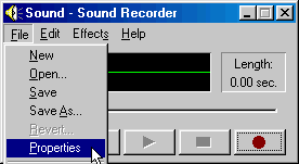 Converting to 11 kHz, 8 bit, Mono Some suggestions: - Open the wav file into windows sound recorder (oddly, it will process files longer than 60 seconds). Goto Files>Properties on the menu. From there, the conversion is basically common sense. Play with it a while; it's easy. (I used this for the music in Train Yard).