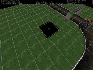 Repeat this process all around the inside edge of the oval track - taking care not to undercut the location of the start-line banner post! The reason to keep the width/height small at this point is that its easier to be more accurate for these edges - especially on the corners. Make sure you dont cut too close to the road at the corners, also the road itself might be tilted. Mistakes are easy to correct with the bracket [,] keys, and the wireframe grid makes adjusting the terrain pretty simple.
