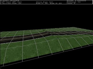 Add some hills. Use F6 to set the cursor to 5x5. With the terrain cursor aligned with the outside edge of one of the straights, use the bracket [,] keys to raise the terrain a little. The trick here is that the terrain is being raised as a block, not a hill. The way to deal with this is to raise a little, then move over a bit. Raise some more, then move over a bit more. Whenever you adjust the terrain, the "mound" is added to, or removed from, what's there already - you can use this to make a longer gradually raised section, for example, by stepping the terrain up in many rows, or make a steeper jump by raising the ground sharply in the same place. Repeat this process until you've added some hills.