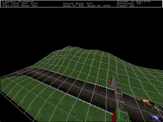 Add some jumps. Use F7 and F8 to adjust the terrain cursor to 5x1. Move the cursor over the track until its near the middle of a horizontal section of road and you can see how the yellow grid will add a jump to the track. Use the bracket [,] keys to increase the altitude 1 foot. Now move to the next square. Increase the altitude by 2 feet. Move to the next square and increase by 3 or 4 feet. To complete the jump, move to the next square and increase by a little less, maybe only 1 or 2 feet to form a downward slope. Try to form a curve or mound in the road for the jump.