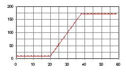 Above is a gradual transition to a medium steep hill. You may also use a more dramatic approach for a steeper hill. For example the following table of values will have a more sudden increase and a much steeper hill.