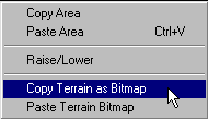 The motives for using this feature have remained obscure until recently (Jan-Mar 2000). To date, the only way it's been used is to copy the terrain altitude from one track to another. Like this: Access the copy terrain as bitmap feature by using one of the following methods: