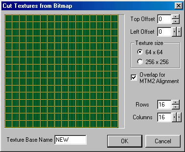 Making ground textures is not too hard at all. First make two (you could do more) basic 64x64 textures that you want to use as the road and off-road areas of the track. I used Sausage Software's Reptile program to generate the textures (You could also make them in psp using the various spray features). For example, you might want grass and dirt.