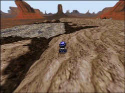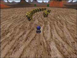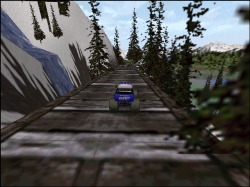 (Sight Lines) An often overlooked aspect of track making are sight lines. What are sight lines? Sight lines are the visual cues we provide racers so they know where the course is leading them. On a track like Crazy98, and others like it, this isn't really an issue because the road is clearly visible directly in front of you at all times. However, this is not always the case with many custom tracks. For the purpose of demonstrating good examples of sight line strategies, we'll look at Bobsled Rally Way by Spider, Snowbound TOC edition by Skyman, and Lakebed Extreme by GTX_Valvejob. Bobsled Rally WayThe first location we're interested in is the mid-race convergence of railway and roadway. The textures are a multitude of color and the correct path is by no means obvious. ![]() As you come up the hill toward the intersection, the surrounding terrain and direction of the road suggest the course should go straight. ![]() It is therefore very easy to imagine yourself going straight, and finding yourself on the wrong road, probably crashed, and out of the race. To help racers, Spider provides two visual cues. The first is the tree on the right; the second is the dirt texture leading right. After a few practice laps, the racer learns these visuals are unique to this location and are an aid in determining the correct driving line to follow. ![]() This intersection would be particularly devastating were it not for the visual references provided by the maker. For instance, moving forward just a couple hundred feet (in the correct direction), we are immediately confronted by yet another directional problem. ![]() Following this jump is a huge drop down to a large lake surrounded by some pretty rugged terrain. The approach gives no indication of what's to come, and a minor slip will put you on the roof with the potential of even losing your way. A good landing is crucial to a good lap. To assist in this task, Spider has planted two snow-capped, very tall trees that mark the landing area edges. The tips of these trees are visible from the approach to the jump and despite the obscurity of the drop, they very clearly mark where a racer wants to go in much the same way as the sights on a rifle show the marksman the trajectory of a bullet. In this way, a racer is able to 'thread the needle' so to speak. ![]() It is easy to take such markings for granted, but you better believe each and every visual cue has been inserted with an eye to providing clear sight lines. There is no coincidence or accident here. Everything has been done deliberately. A second example of the 'gun sight' strategy is found here. A road that approaches a blind spot straight on, and continues straight after the leap doesn't need obvious markers such as these. But when the jumps and blind spots occur in the middle of a bend, the markers can be the difference between a successful lap, or a crash. ![]() The last example from Bobsled Rally Way is quite the opposite of the thread the needle technique. In this spot, the roadway gives every indication of continuing straght but actually curves to the left up at the end. In order to prevent racers, who might be caught up in the heat of a race, from allowing their momentum to carry them straight and therefore up and out of the race, Spider plants two large trees smack dab in what appears to be the middle of the road. ![]() Racers may not recognize immediately which way the road veers off, but they can be confident that it does not continue onward. Knowing where NOT to go is sometimes as important as the correct direction. SnowboundSkyman uses the same barricade idea in Snowbound. ![]() He also threads the needle when he needs to. ![]() Viewing distance and momentum can conspire against a racer. At this spot, the road travels downhill, allowing a racer to gain considerable speed. The road is straight and sits in a hollow. Just ahead is a river/water fall which is also straight and sits in a v-shape in the terrain. We have our doubts about continuing through a river, but stranger things have been known in custom tracks. The atmosphere is one of speed. And, the combined effect of road, terrain and momentum lulls us into a false sense of security. We push forward at full throttle. ![]() Or rather, we go full throttle until we reach the bend in the road, at which point the brakes come on hard... often to no avail. ![]() Many a racer has washed their tires in that pond, and several have undoubtedly tasted the snow upside the opposite hill. A similar situation, but one that's handled adeptly, happens here. In this case, the road is a lengthy straight-a-way with a tunnel-like feel (mountains on the left, tall trees on the right). The two trees in the distance create the illusion of a threaded needle passage, and so the racer feels confident in their high speed approach. ![]() But that's as far as this decoy goes. The tree-line barricade quickly comes into view, thus preventing or at least discouraging an over-shoot at the curve ahead. ![]() Now, of course, you object: this is all well and good, but I'm not making a mountainous track with snow and pine trees; using these ideas will appear gimmicky in my track. And you'd be right. But remember, Bobsled Rally Way and Snowbound were chosen because they exemplify the topic at hand. How you provide visual cues is entirely up to you, and the context within which you're working. But the principles are the same regardless of the specific track environment. Namely, to include aids that point the way for racers in hard to navigate areas of your track. Lakebed ExtremeIn this example, we drive along the dock of what used to be a lake. The end-of-road barricade works the same here as it does above, with the added bonus that the boat tilted on its side is also pointing in the direction in which you must turn. Despite the lack of actual road and direction signs, there should be little doubt about where you must go next. ![]() Checkpoints do not occur in nature. They ar