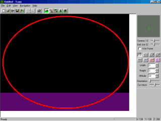 This "area" is the world of your track.  The black region that you see when you first start Traxx can be considered the "sky" and the purple area is the "ground" upon which you will build your track.  For the moment, we will not concern ourselves with the sky area, and we'll direct our attention to the ground (purple).