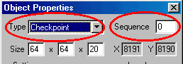 In the properties box, set the type to check point and the sequence number to zero.  The size may vary depending on the size of the summit you make.  Click OK.