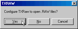 Click Yes to associate RAW files with TxRaw. That's it, the program is now set to use. Briefly, TxRaw is a texture viewer program. In windows explorer, just double click any RAW file and a pop up graphic of that texture will appear. Like this.