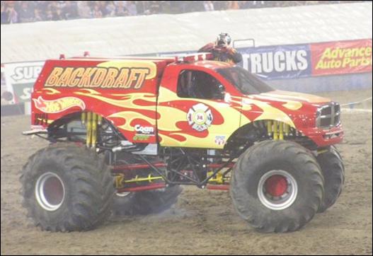 More and more often, monster paint schemes are less paint and more vinyl decal, a credit to the influence of toy and R/C truck makers on the industry-in this case, Sudden Impact gets its design from Traxxas, and Backdraft from Hot Wheels. My general tendency is to lean towards this side of graphic design, as simple, bold colors and graphics work well on the low-resolution texturing of MTM 2 trucks. However, this is my own personal style and I do not wish to force anyone onto it. In fact, I hope that you can use the tricks I demonstrate here to develop your own style, as individuality is something which MTM 2 needs more of.